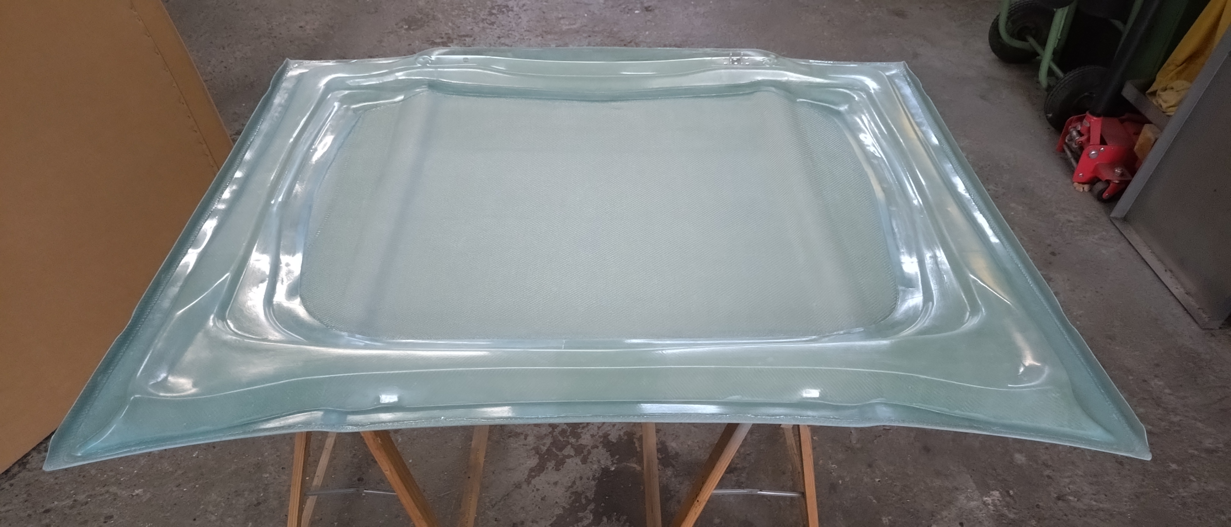 Gewicht in GFK: 6850 Gramm, Das Material vom Drahtgewebe ist Edelstahl 1.4401